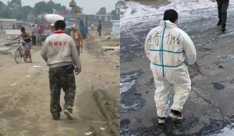 共同战“疫”之时,两组背影照片令人印象深刻。