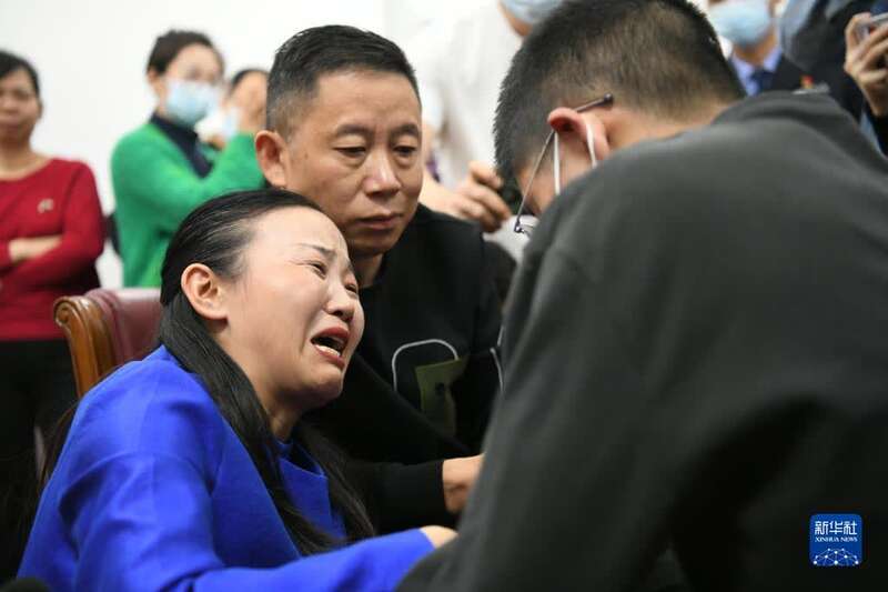 12月6日,孙海洋一家三口的手紧紧握在一起。