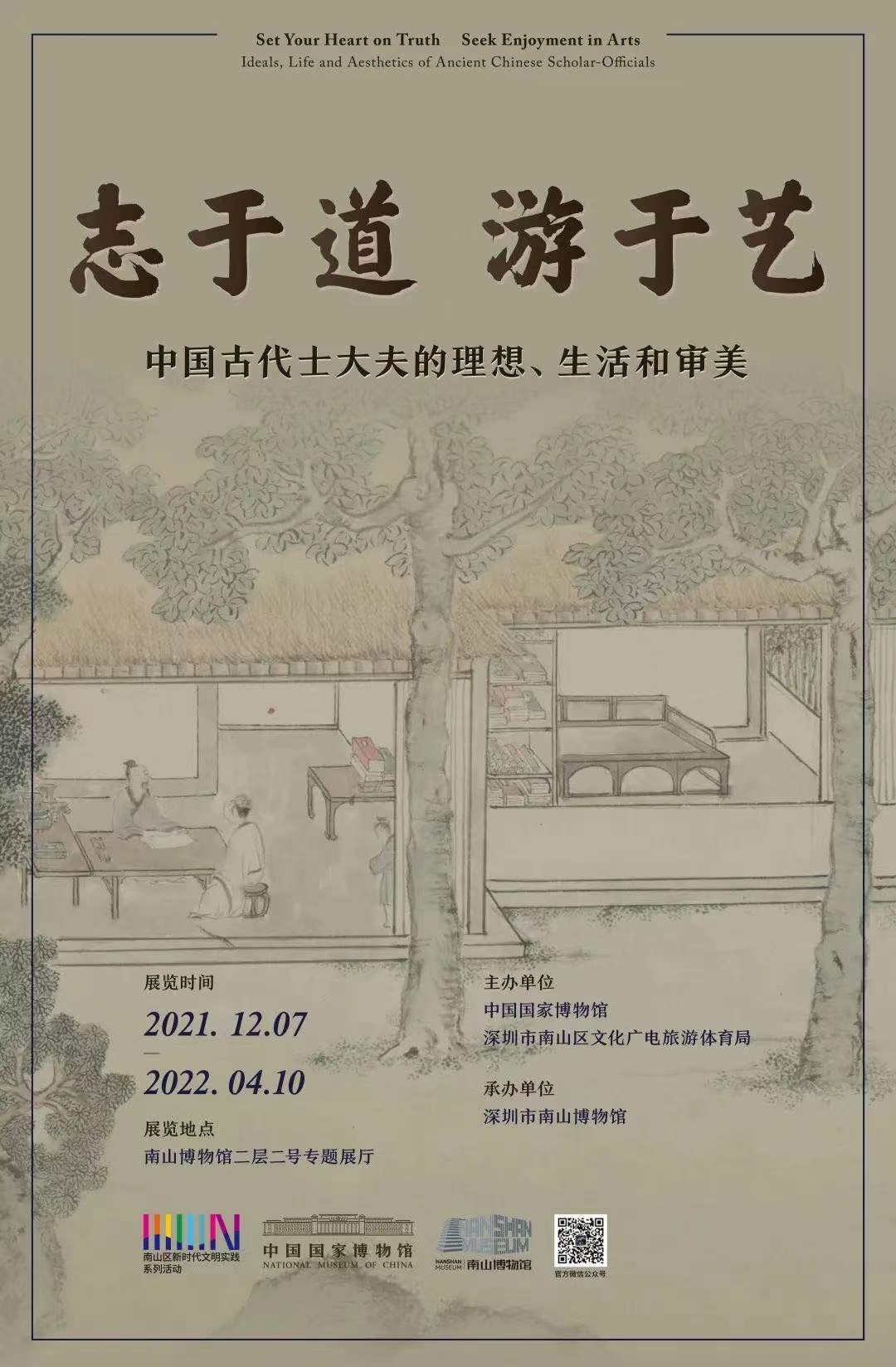 12月7日,由中国国家博物馆、深圳市南山区文化广电旅游体育局主办,深圳市南山博物馆承办的“志于道 游于艺——中国古代士大夫的理想、生活和审美”展览在深圳市南山博物馆正式展出。展览依托中国国家博物馆丰富的藏品资源,立足深圳在大湾区的中心地缘辐射优势,将成为惠及粤港澳居民与游客的重要文化盛宴。