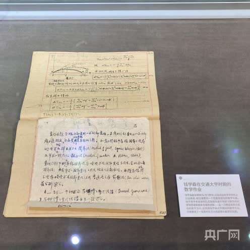 钱学森在上海交通大学时期的数学作业(央广网记者 唐奇云 摄)