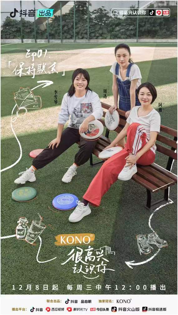 12月8日中午12:00,由抖音携手品心明文化打造的首档“所有格”纪实真人秀《很高兴认识你》第二季正式开播。周迅、阿雅来到上海,与日常社恐的飞行嘉宾李雪琴一起,以最真实的状态体验时下很受欢迎的一些社交方式-飞盘局、剧本杀、摇摆舞等。面对不同的社交场景和社交方式,周迅、阿雅和李雪琴有不适也有惊喜,有喜欢也有拒绝,而她们每个人都在体验中发现了适合自己的社交方式。