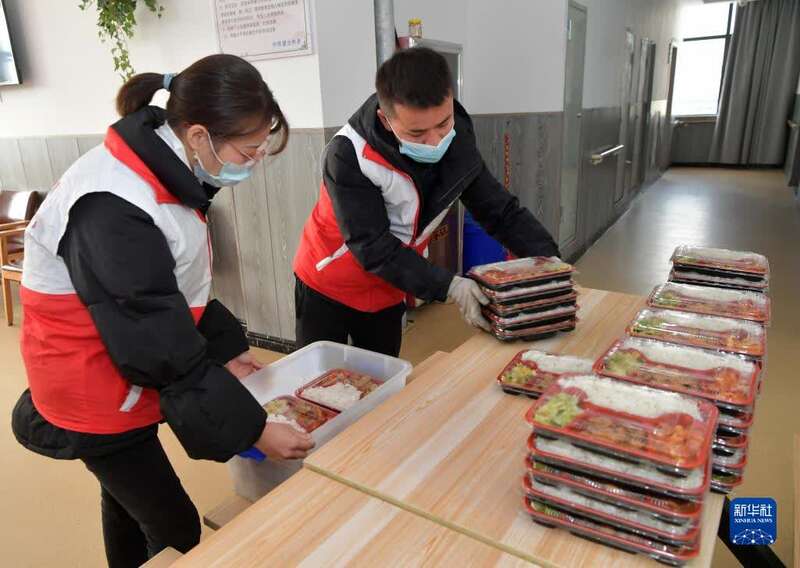 12月7日,志愿者在江西省南昌市青云谱区洪都街道洪校社区“爸妈食堂”打包午餐,准备为行动不便的老人送餐。新华社记者 彭昭之 摄