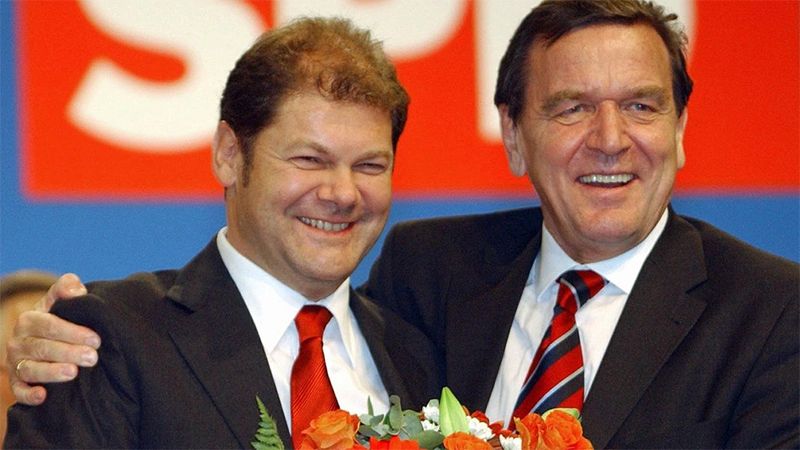 如果说德国战后的前两位社民党籍总理对朔尔茨早期的政治选择产生了重要影响,那么第三位社民党籍总理格哈德·施罗德,则可谓朔尔茨在联邦政坛的“伯乐”。2002年,朔尔茨被施罗德提名为社民党秘书长并成功当选。据德国《法兰克福汇报》当时报道,施罗德早在两年前就称朔尔茨是他的候选接班人之一。