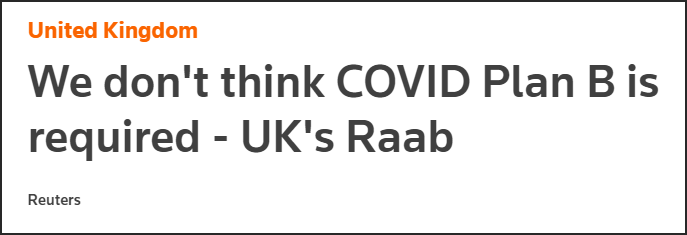 据路透社报道,就在一天前(12月7日),英国副首相、司法大臣拉布公开表示,虽然圣诞临近,但英国无需启动更加严格的防疫政策。“为什么?因为我们的疫苗项目相当成功,”拉布对BBC说。