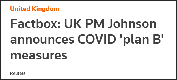 据《卫报》报道,政府新的防疫指南,即所谓“Plan B”,要求英格兰民众从下周开始“尽可能地在家工作”。另外,在电影院、剧院等绝大多数室内公共场所必须佩戴口罩。英格兰民众进入夜总会、体育馆等大型场馆时,必须出示显示疫苗接种情况的“疫苗通行证”,通行证上必须显示为完成疫苗全程接种。此外,核酸检测阴性的情况也会显示在这个英国国家医疗服务体系(NHS)的通行证App上,以代替接种证明。