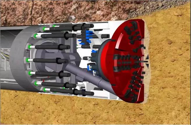盾构是一种现代化隧道掘进专用的大型工程机电成套装备,工作的时候就像蚯蚓钻洞,“啃”地下的土石,然后将其变成泥石饼吐送到身后的传送带上运出隧道。以盾构代替大量工人和风镐、钢钎,可以极大地提升工作效率并极大改善安全性,已经普遍应用到隧道挖掘工程中。可以说,修地下管道、建地铁、造高速,挖掘跨越江河、洞穿大山的隧道,都离不开它。