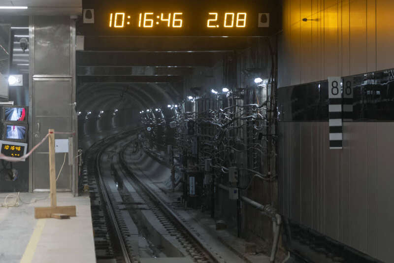 ↑这是12月2日在俄罗斯首都莫斯科拍摄的莫斯科地铁第三换乘环线西南段米丘林大街站内隧道。新华社记者 白雪骐 摄