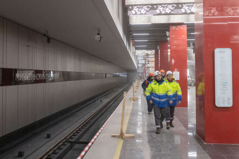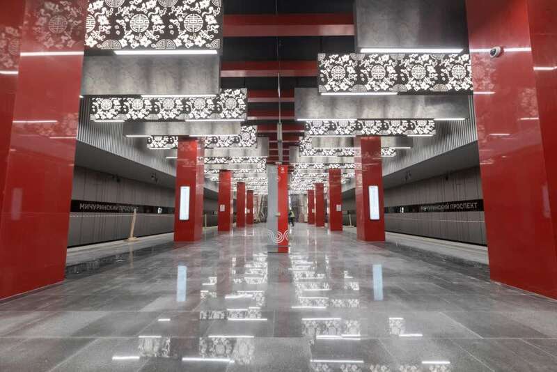 12月7日,由中国铁建承建的莫斯科地铁第三换乘环线西南段投入运行。俄罗斯总统普京以视频连线形式出席通车仪式并宣布正式开通。2017年1月,中国铁建中标莫斯科地铁第三换乘环线西南段项目,标段全长5.4公里,包含阿明耶沃站、米丘林大街站、韦尔纳茨基大街站3个车站和9条盾构隧道建设任务,这也是俄罗斯首次在地铁施工领域引进中国企业。走进米丘林大街地铁站,红色立柱、团寿纹、祥云等中国元素随处可见。这里已经成为中俄友谊的新地标,展现出“一带一路”上的跨文化盛景。