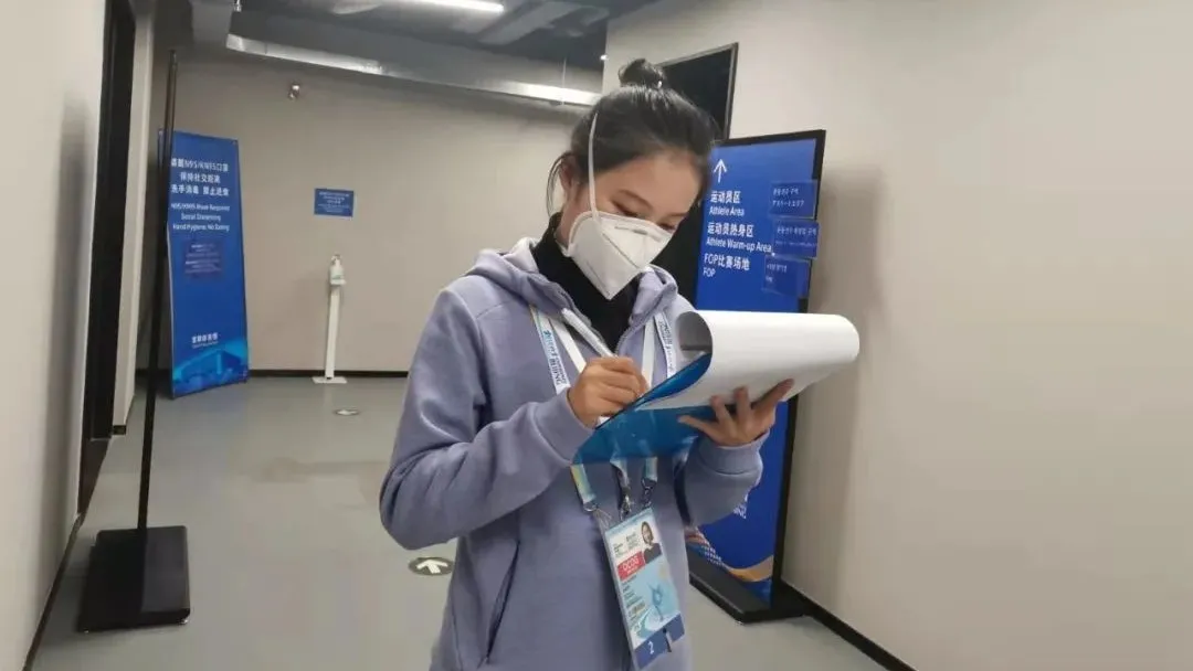 “专业”的“争分夺秒、随机应变”在柴昊雯的工作中体现得淋漓尽致。 信息员工作是一个需要体力与脑力系统配合的工作,也是整个竞赛组织中的重要一环。这就需要志愿者能发挥专业性,随机应变地处理各种问题。“我们直接对接的人员有亚滑联工作人员、技术官员、裁判员等6类,且每场比赛递送的信息文件数量并不固定,我们需要根据比赛小项的不同以及对接人员的所需来确定。在每场比赛结束后的20分钟可谓是我们的‘极速时间’,作为‘Runner’的我们就是要将信息报告准确无误的按数量、按要求送到不同类别的工作人员手中,并且需要随机应变地处理各种问题,如突然增加的文件数量需求,随时变动的各类工作人员位置等等,如何能准确、精准、快速地完成投递是对我们的考验。”