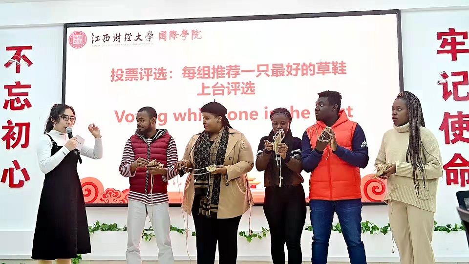 “国际学院学生党员宣讲团”成员、少数民族党员代表、2019级国际会计专业马石月儿同学全英文宣讲了党的十九届六中全会精神。国际学院的党员、团员代表们以情景讲述、迷你剧的形式向全体中外学生倾情演绎了著名的党史故事“真理的味道是甜的”,展现了以陈望道为代表的早期传播马克思主义的先驱者肩负起马克思主义的传承使命的意志与决心。来自赤道几内亚的留学生米查用中文讲述了“井冈山上一根灯芯”的党史故事。活动现场,国际学院学生与留学生们共同编制“红军草鞋”,国际学院学生向海外留学生介绍了“红军草鞋”在中国革命史上的重要意义。