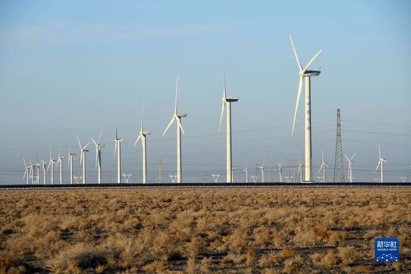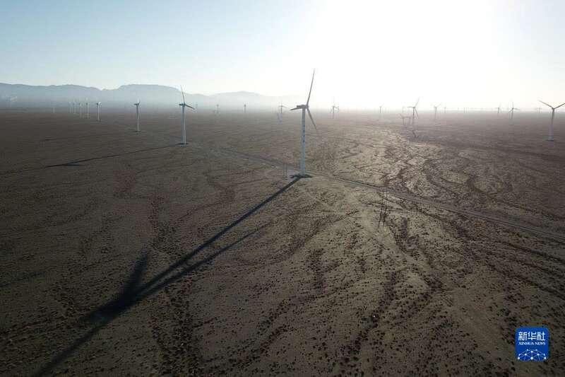 这是12月8日拍摄的中节能(甘肃)风力发电有限公司玉门昌马风电场的风机(无人机照片)。新华社记者 范培珅 摄