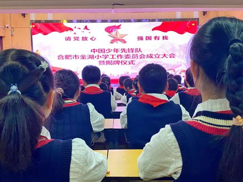 当天下午,在整齐嘹亮的队歌声中,金湖小学少工委成立大会举行。团蜀山区委和该校相关负责同志为少工委揭牌;同时,学校少工委举行图书捐赠仪式,向偏远乡镇学校的留守儿童捐赠学习和科普类图书;全体少先队员共同观看“天宫课堂”首场直播。