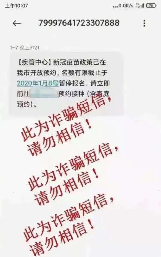 近日,多地市民收到当地“疾控中心”的短信,称新冠疫苗开放预约,名额有限,并附上钓鱼链接,引导居民点击后填写身份证、银行卡、验证码等信息并进行“预约缴费”。