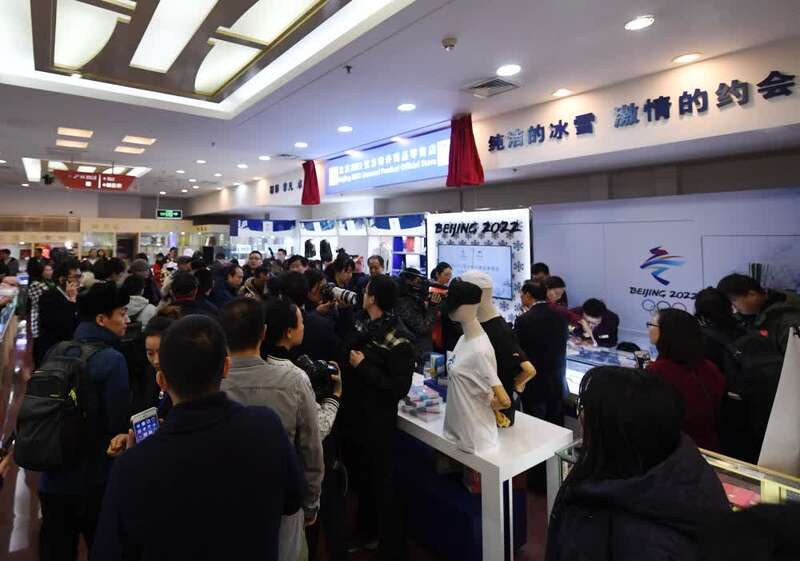 ↑2018年1月10日,位于北京王府井工美大厦的北京冬奥会特许商品零售店开业吸引大量市民。当日,首批7家特许商品零售店在京同时开业。新华社记者张晨霖摄