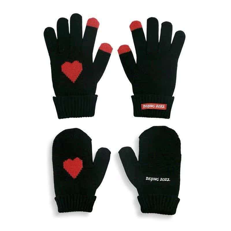 ↑北京冬奥会亲子爱心手套(设计灵感源自冰墩墩手心里的爱心,保暖舒适,亲子款的设计富有趣味性和互动性)