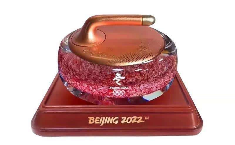 ↑北京冬奥会“手握前程”碎钞摆件(以冰壶为型,内部填充人民币生产过程中产生的非合格品制成的碎钞,体现了绿色办奥的理念,还蕴含“手握前程”“前程似锦”的吉祥寓意)