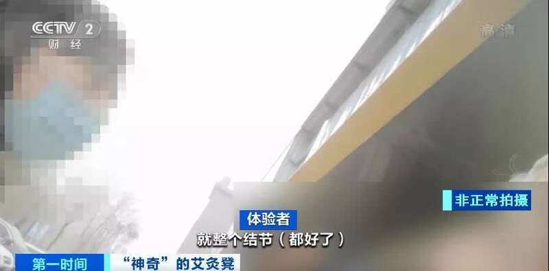 体验的同时,房间前方的电视开始播放与艾灸有关的健康讲座,主讲人身份为艾灸馆总部的总裁。