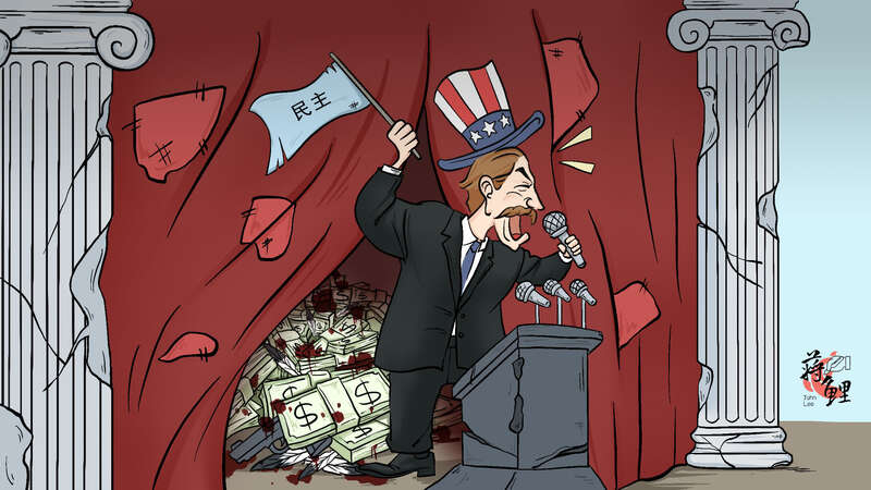 美国高举“民主”的大旗,却遮不住其国内种种丑陋的民主劣迹。希望那些跟随者们也停下脚步,看看它遮羞的幕布后,染血的美元。
