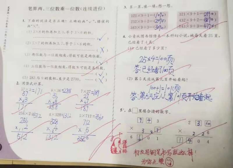 “字迹工整,看着极度舒适”“初次用钢笔书写就这样,为你点赞!”“很养眼,忍不住为你打Call”……近日,合肥市“乔利荣小学数学名师工作室”晒出一组作业评语。