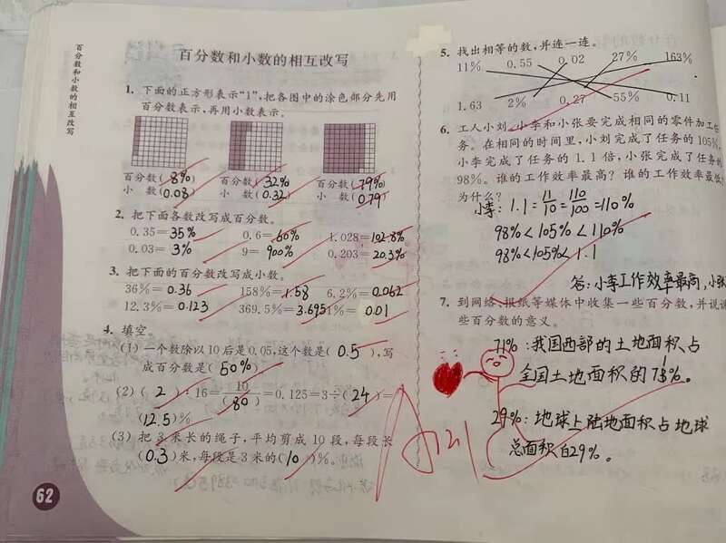 记者注意到,作业结尾不仅有个性化的点评语言,还有大拇指、小印章、爱心图、金话筒等简笔画图案。很多家长表示“老师有心了”,学生则直呼“萌到了”!