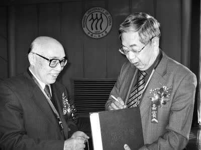 张立文(右)与中国人民大学校长刘伟 图片由中国人民大学哲学院提供