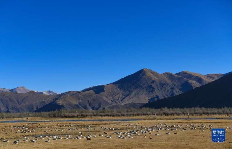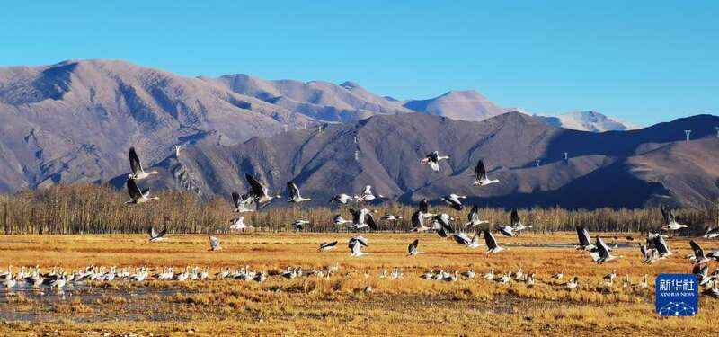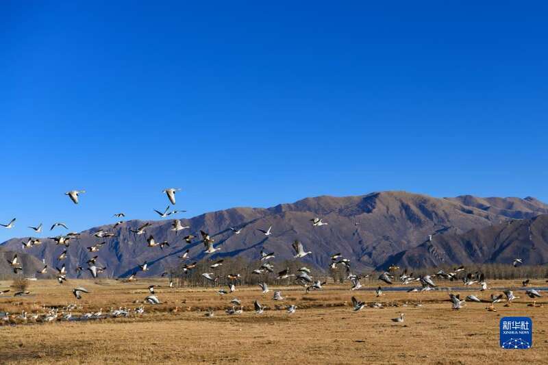 这是在唐嘎湿地拍摄的斑头雁(12月11日摄)。新华社记者 沈虹冰 摄