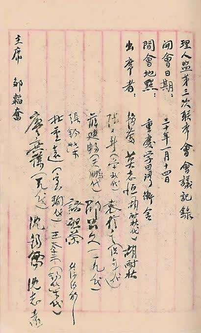 内页里的理事会、人事委员会、监察委员会第三次联席会议签名页(1941年1月14日)。