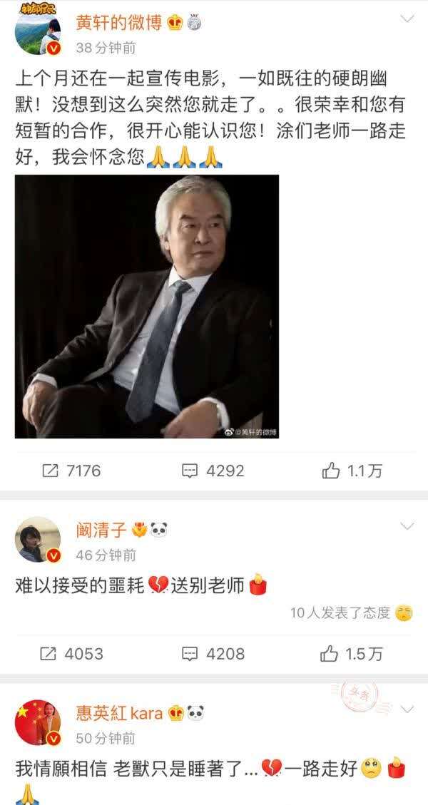 许多与涂们合作过的演员发微博纪念涂们