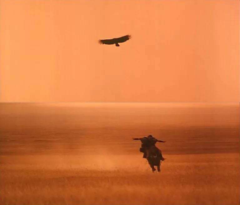 在塞夫导演的《悲情布鲁克》中,蒙古族牧人为保卫自己的家园抗击侵略者的悲壮故事演绎的激荡人心。影片中有一个在马背上做出展翅飞翔的动作的人,就是涂们。这部作品也让他获得了金鸡奖最佳男配角奖提名。
