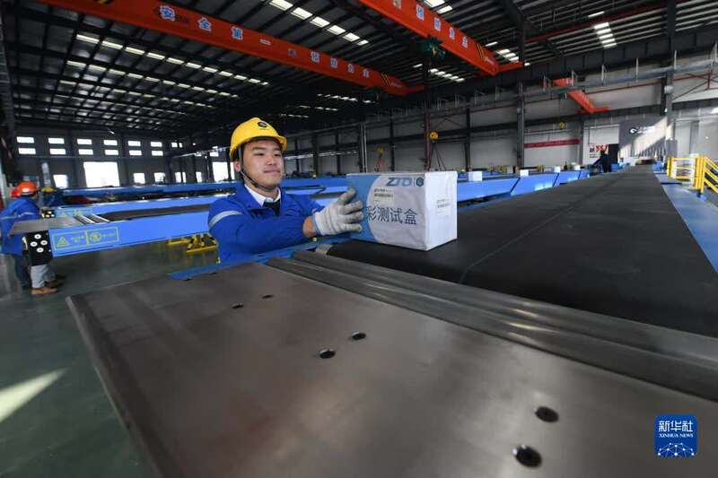 12月10日,在芜湖市双彩智能科技有限公司,工作人员对一款物流智能分拣设备进行测试。新华社记者 张端 摄