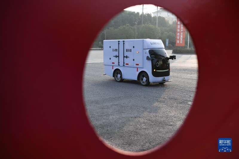 12月10日,在安徽省芜湖市南陵县,一款快递配送无人车在测试中。新华社记者 张端 摄