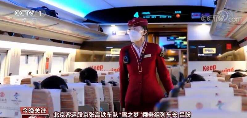北京客运段京张高铁车队“雪之梦”乘务组列车长 吕盼:我叫吕盼,是北京客运段京张高铁车队“雪之梦”乘务组列车长。我值乘的复兴号动车组,是服务于世界首条设计时速350公里智能京张高铁。它将用“中国速度”为北京2022年冬奥会和冬残奥会提供功能完备的交通服务保障。 京张高铁的全程有近10条隧道,隧道总长度30多公里,很多旅客会产生耳鸣。我找了很多教程,改良出一套“防耳鸣操”,受到了很多旅客的好评。多看一眼、多问一句、多走一步、多帮一把,对不同的重点旅客悬挂不同颜色的中国结。我们一直从细微的地方提升着服务质量,用精湛的服务迎接八方来客。