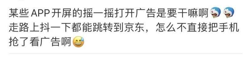 江苏省消保委关注发现,一些APP悄然上线了,一种新的开屏广告模式,“摇一摇”了解广告详情或跳转相关应用软件,该模式也引发网友“不适”。
