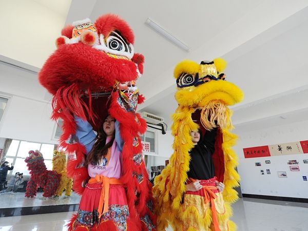 2021年12月14日,吉林长春,长春电子科技学院舞狮社团的“00后”大学生正在学习南派舞狮。据了解,这个舞狮社团成立以来,受到大学生欢迎,目前已有近百名大学生参与其中。 中新社记者 张瑶 摄