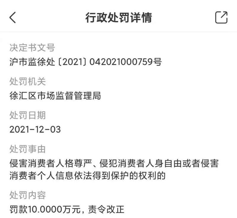 近日,小鹏汽车因侵害消费者人格尊严、侵犯消费者人身自由或者侵害消费者个人信息依法得到保护的权利,被上海市徐汇区市场监督管理局罚款10万元。