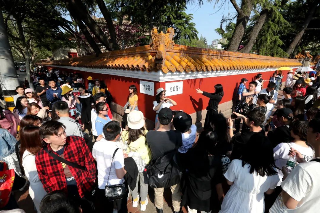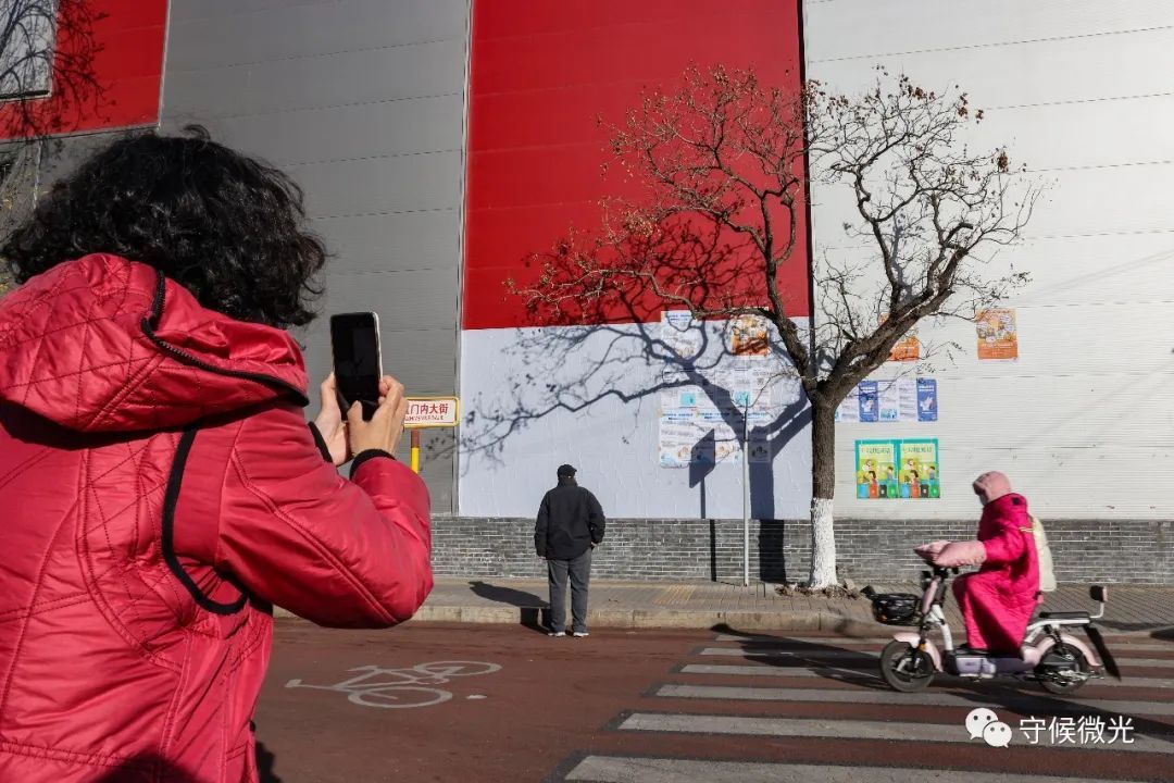 年轻男女从这棵“网红树”下走过,形成电影海报般的画面。还有情侣拿着刚领的结婚证到树下留影,呼应背景墙的红。狂热的不止年轻人:几位中年伙伴从城市的不同地方开车过来,举起专业的数码相机,轮番到树下互拍。一位阿姨从一款新闻资讯app上看到自媒体报道,也特地赶了过来。