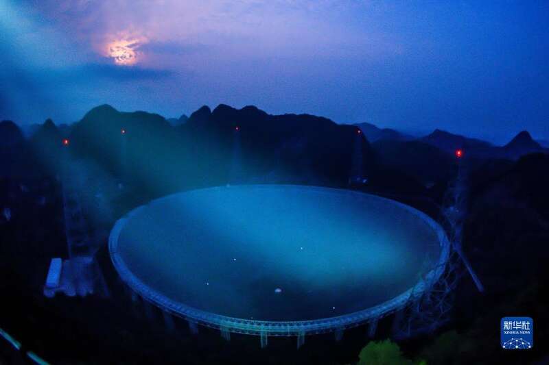 3月29日拍摄的夜幕下的“中国天眼”一景(维护保养期间拍摄)。新华社记者 欧东衢 摄