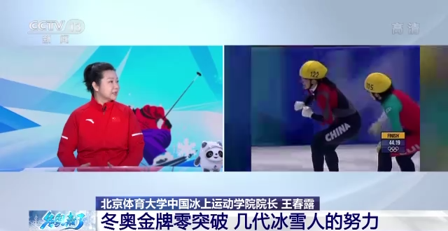 北京体育大学中国冰上运动学院院长 王春露:那个时候中国冬奥会还没有产生1枚金牌,我们所有冰雪人的愿望就是实现冬奥金牌“零”的突破。那天500米的决赛,我们不知道结果,我们只能一轮一轮去拼,把自己做好。500米很短,但是我们把一生的愿望融入了这滑行的四十几秒当中。