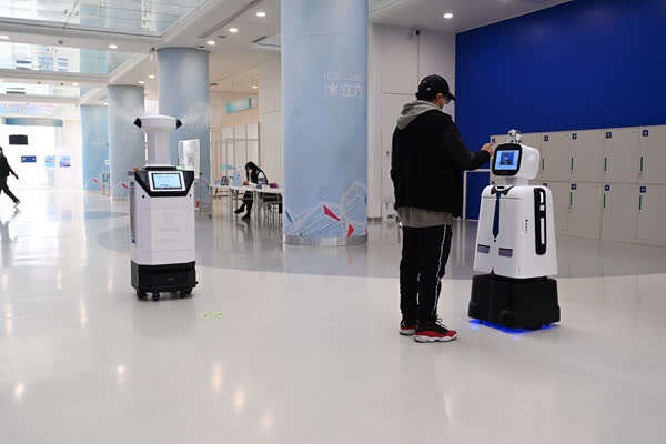 测试赛期间,国家游泳中心引进多台机器人,负责清洁、消毒、引导、防疫提示等工作,为场馆构建人工智能的防疫屏障提供助力。