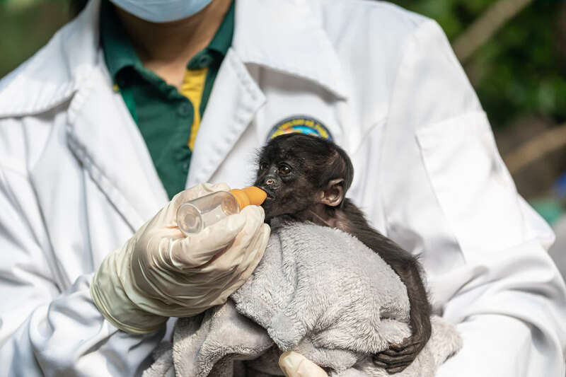 目前,“丛丛”以奶粉调制成的人工乳液为主食,苹果、豆角、番石榴等营养丰富的果蔬打碎搅拌作为辅食。为了保障“丛丛”的营养充足,保育员每天要喂食6餐。随着“丛丛”年龄的增长,保育员将逐渐减少喂奶餐数并增加果蔬辅食的饲喂量,直到它1岁完全断奶。