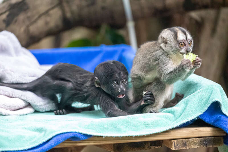 针对黑丛尾猴群居性动物的特性,保育团队将年龄相仿的巴西夜猴、棉顶狨猴与“丛丛”一起饲养,让小猴子们可以提前熟悉群体生活。