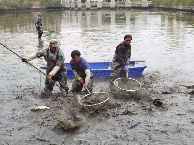 12月15日、16日连续两天,物业服务中心抢在新一波寒流到来之前,在朗月湖和问月湖进行冬捕,共捕捞出鲢鱼、草鱼等2000余斤,最大的有10斤左右。一尾尾大鱼被装袋称重后,被送到食堂请饮食服务中心连夜加工,烹制了鱼块和鱼汤,全部免费赠送给荷花池和瘦西湖校区的学生,在这个寒冷的冬日为广大学生送上后勤人的一份温暖。