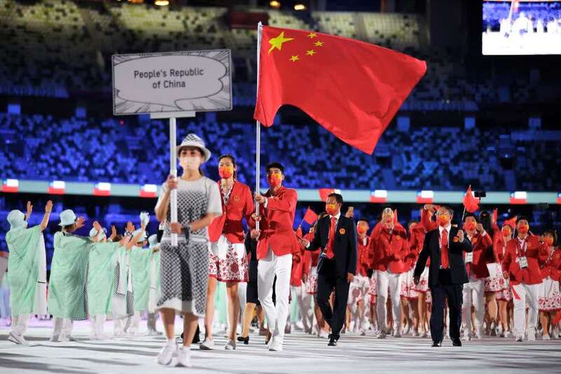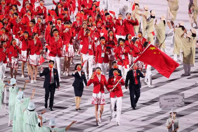 △7月23日,第32届夏季奥林匹克运动会开幕式在日本东京举行。这是中国体育代表团入场。(7月23日摄)