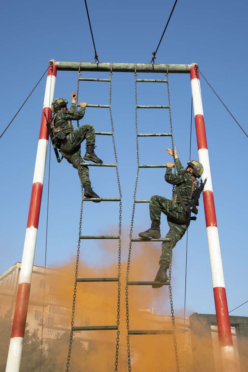 12月6日,武警广西总队北海支队组织特战队员开展攀登、小队战术、综合体能等多个课目的强化训练,全面锤炼特战队员的综合实战能力,为今后遂行多样化任务提供坚强的能力支撑。(余海洋/摄)