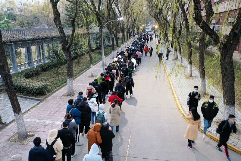 2021年12月17日,西安市碑林区太乙路街道根据疫情防控工作需要,启动全员核酸检测。西安交通大学兴庆校区从下午1时许开始为近2万名师生进行核酸检测,检测地点设在宪梓堂,排队等待核酸检测的同学们将宪梓堂外的花园围了一个圈。