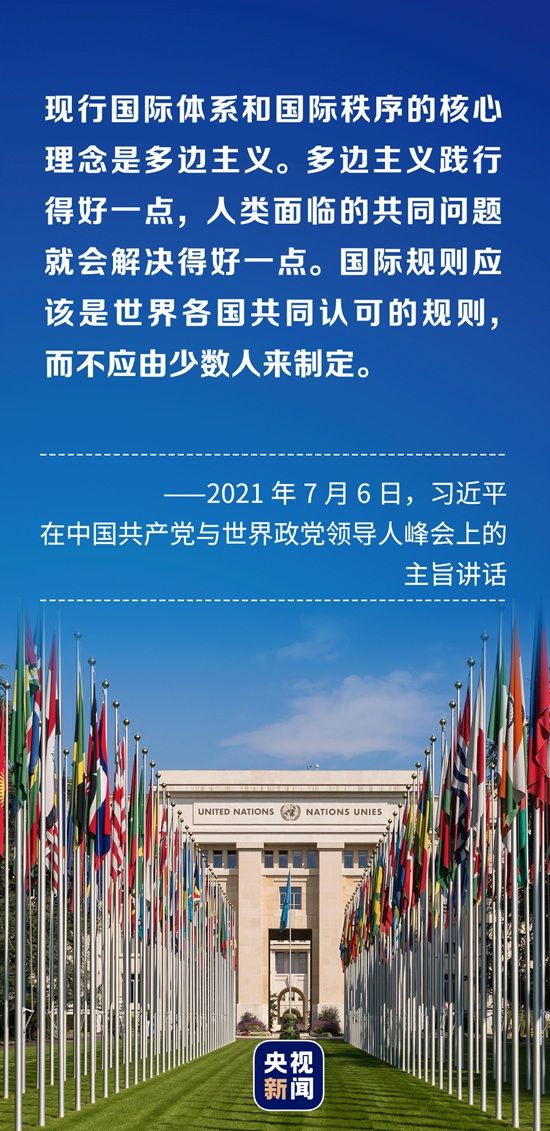 “国际上的事应当由各国共同商量着办,推行国际关系民主化、践行真正的多边主义才是人心所向、大势所趋。”