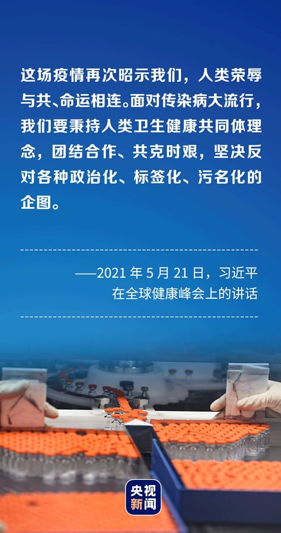 “疫情再次证明,我们生活在一个地球村,各国休戚相关、命运与共。我们必须团结合作、共克时艰,共同守护人类健康美好未来。”