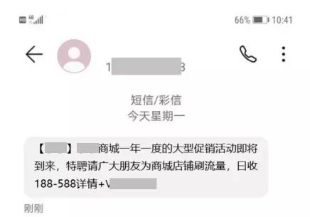 不法分子发送刷单诈骗消息,以工作简单、高额薪金为诱饵,受害人联系后,进一步诱导受害人通过微信扫一扫,或者支付宝扫二维码等方式进行“下单付款”操作,但实际上该操作是向不法分子账户转账。