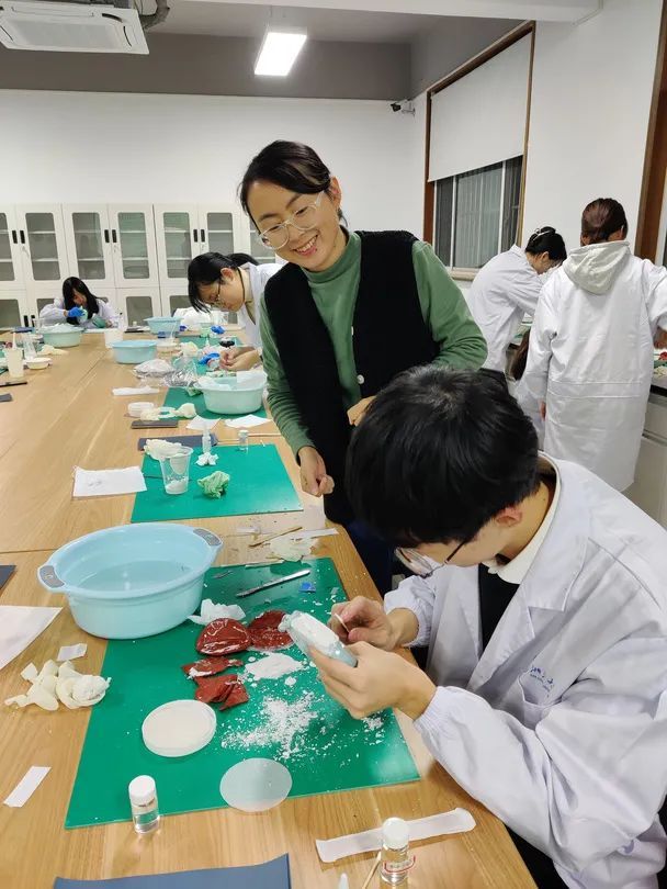 潘慧敏师从陶瓷修复大师蒋道银先生,在今年举行的第二届全国文物职业技能竞赛上荣获陶瓷组三等奖。在她的指导下,同学们亲自上手操作,当了一回陶瓷修复学徒。清洗、拼接、粘结、翻模、补缺、打磨……慢慢地,一块块不起眼的石膏变成了具有特定形状的残缺片,让每一件破碎的瓷器趋于“圆满 ”。