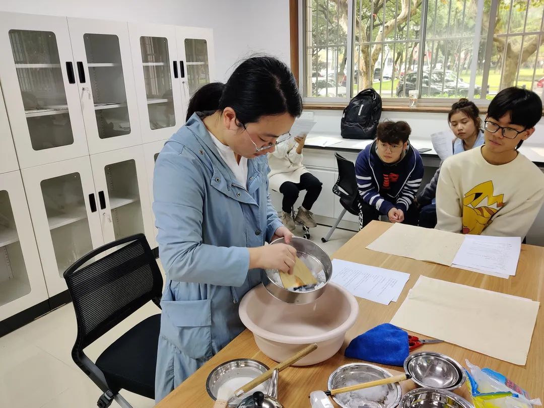 文物保护修复非常强调动手能力和操作技艺,为了让同学们更好地学到这方面的本领,张晖邀请浙江大学图书馆古籍特藏部的韩秀丽老师和浙江大学艺术与考古博物馆的潘慧敏老师加入教学团队,由她们分别传授古籍纸张和陶瓷的修复技艺。